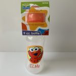 9 oz Cookie Monster plastic bottle. BPA free. Medium flow silicone nipple. Easy to carry.